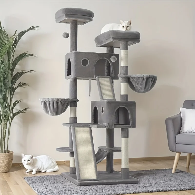 Standing an impressive 66 inches tall, this isn’t just a cat tree—it’s a complete activity center designed for the modern “spoiled” kitty. Whether you have a heavy-footed jumper or a sleepy senior, this heavy-duty tower offers the perfect blend of exercise, scratching relief, and cozy napping spots.